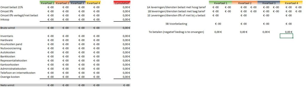 Je kunt hier voor kiezen maar je kunt ook jouw administratie bijhouden in een Excel bestand, In de winkel vind je een een bestand dat voldoet aan alle regels en duidelijk jouw omzetbelasting weergeeft. Dit bestand is gemaakt om jouw winst en verliesrekening op te stellen.