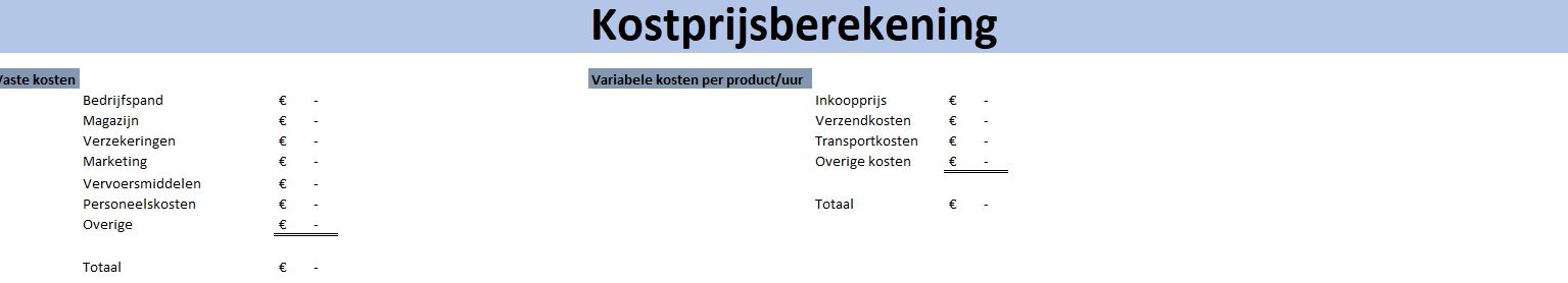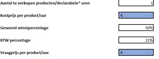 Op basis van jouw vaste en variabele kosten bereken je makkelijk jouw kostprijs. Daarnaast kun je aan de hand van jouw winstpercentage en BTW tarief direct de vraagprijs berekenen.